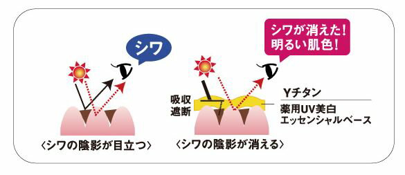 Yチタンのくすみ色遮断効果で、しわやシミの陰影が目立たなくなり、明るくキレイな肌に見えます。