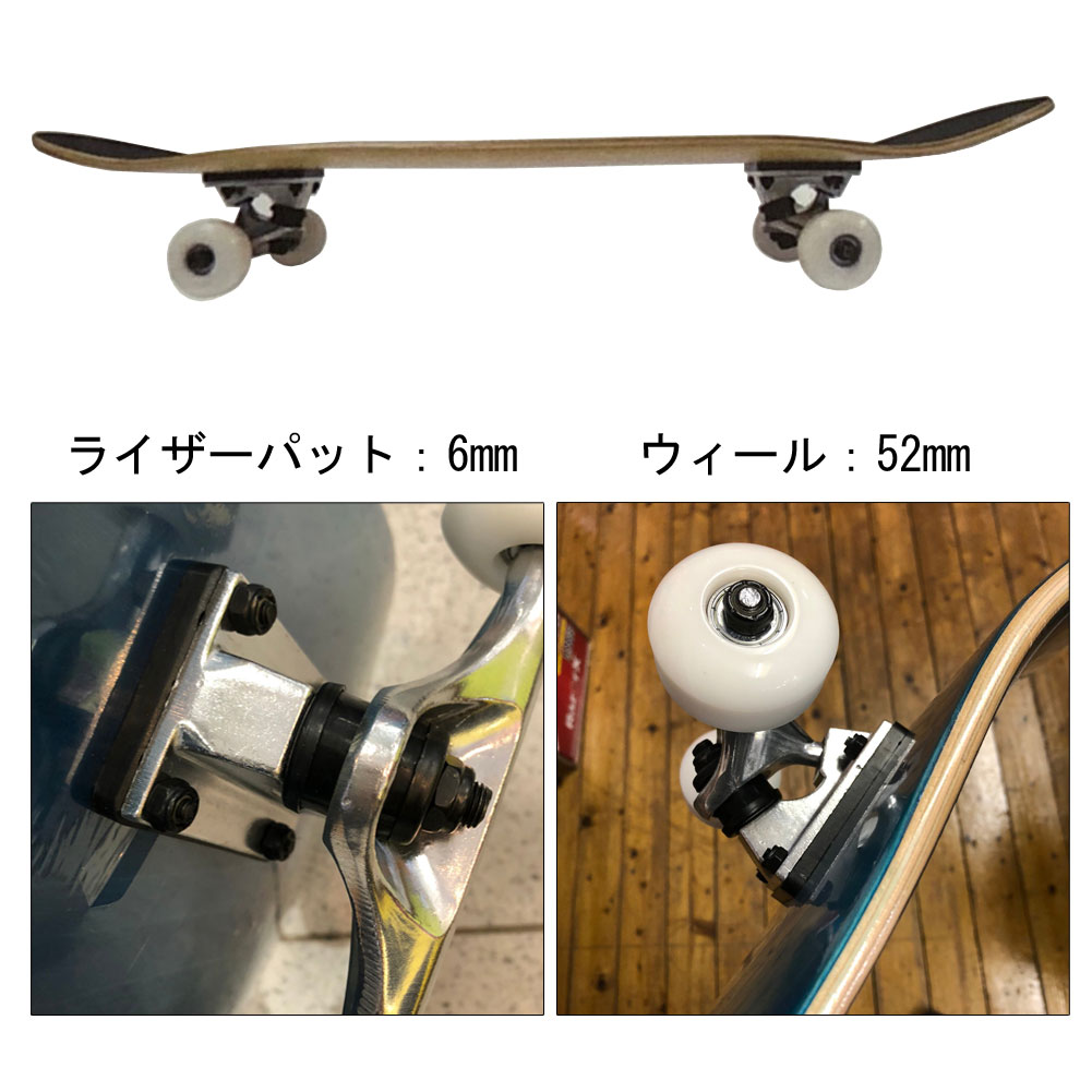 【カラー】・ナチュラル ・ブラック ・ネイビー 【デッキ】・メイプルデッキ/7PLY 【グリップ】・80S GRIPTAPE 【トラック】・アルミニウム5”(125cm)POLISHING TRUCK 【ブッシュ】・PU INJECTION HR95A(ハイリバウンド)BLACK 【ウィール】・ホワイト/ 52mm×32mm /HR99A(ハイリバウンド) 【ベアリング】・ABEC-7 STEEL BLACK SHIELD 【サイズ】 31.25"(79.375cm)×7.75"(19.685cm) 【ライザーパッド】6mm 【ビス】STEEL/BLACK ※送料についてのご注意 ・北海道、沖縄、離島特別地域は、下記の送料になります。